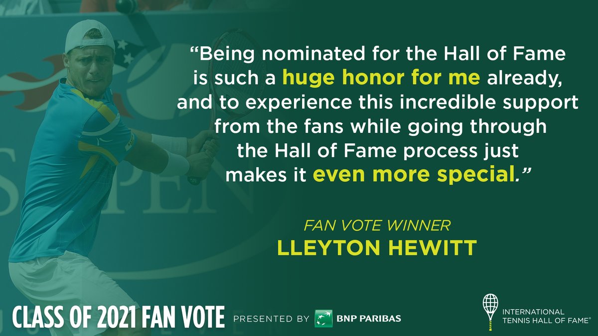 ICYMI, the results of the Class of 2021 Fan Vote presented by @BNPPamericas have been announced, with Australia's@lleytonhewitt coming out on top