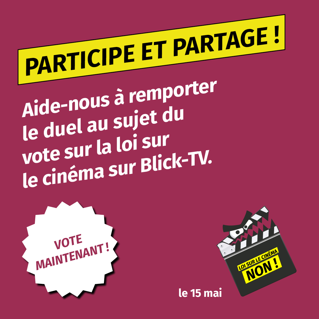 Aujourd'hui, nous avons besoin de ta voix pour dire NON à la loi sur le cinéma lors du duel de Blick !