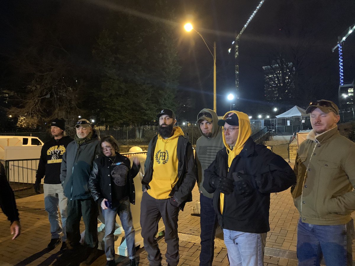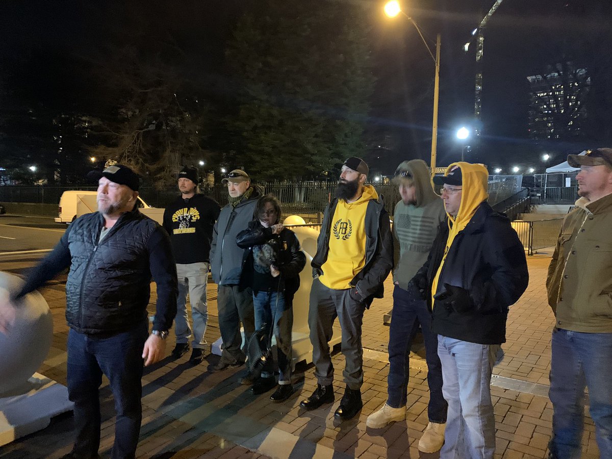 Just Alex Jones and Proud Boys and entourage in front of the capitol in Richmond, and scattered media prepping their own stand ups in the vicinity. No protesters, no one interviewing Jones.pic.twitter.com/o508Exmwtk
