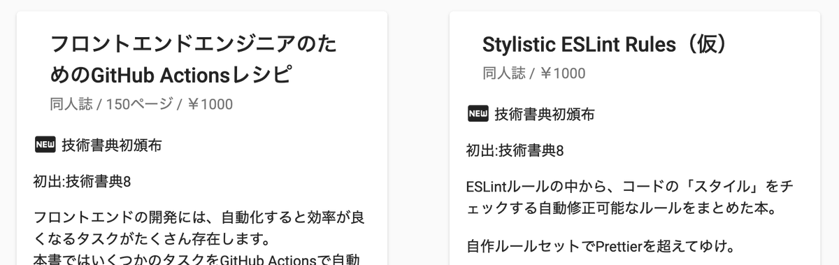#技術書典8 Day2く30 ロリポップランチャー にて「フロントエンドエンジニアのためのGitHub Actionsレシピ」という本を出します! 普段フロントエンド開発をしていて細々したタスクを自動化できたらなとお考えの方は是非!#技術書典 https://techbookfest.org/event/tbf08/circle/5677842733989888 …pic.twitter.com/Y2qmDlIZBV