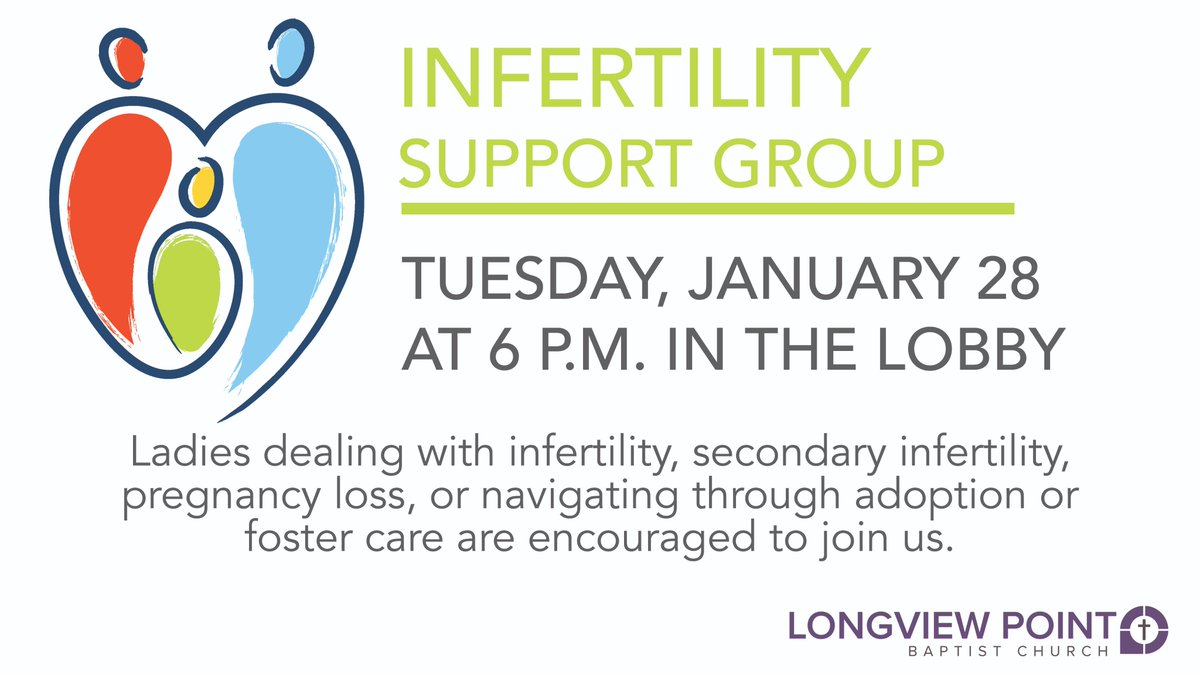 The Infertility Support Group will meet next Tuesday. Any women struggling to complete their families are encouraged to attend.pic.twitter.com/xP5qTXqqQA