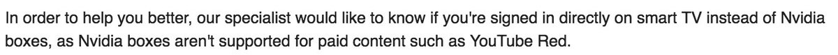 It is absolutely absurd that @TeamYouTube doesn’t support YouTube Red on devices running their own Android operating system.. Got this from support today:pic.twitter.com/uOWDZCZRM7