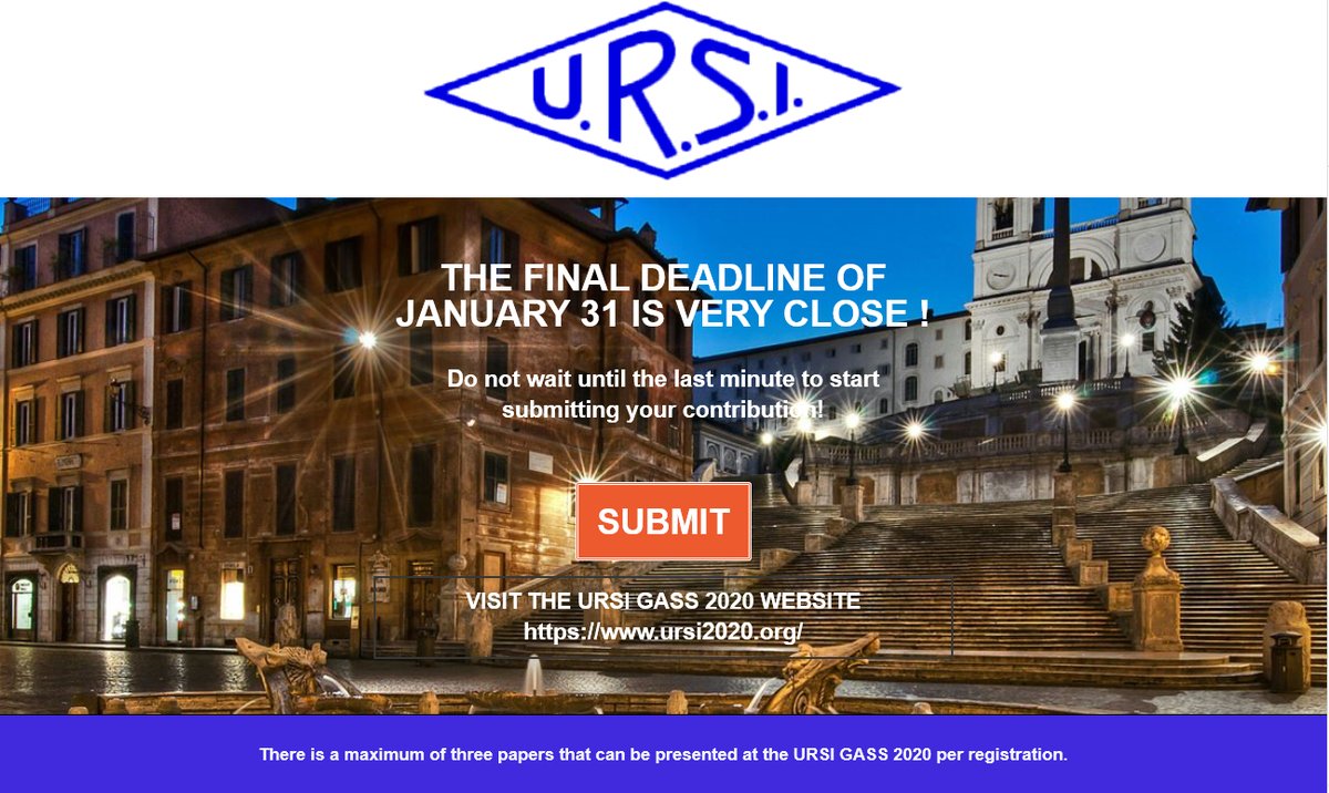 #URSIGASS2020 ? Do you want your paper to be included in the Scientific Program ? Submit your paper NOW : http://www.cvent.com/c/abstracts/75ea042e-5d88-4d0b-afe9-81daeee8dbcd …pic.twitter.com/D9FBptB6a9