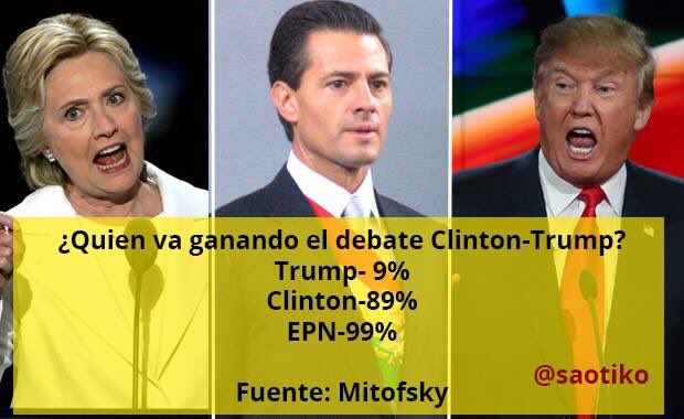 resultados oficiales del debate Trump 44% Clinton 55% EPN 78%