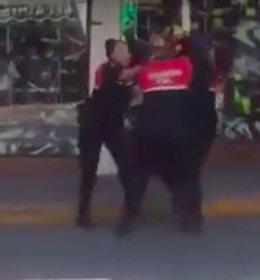 seguro pelean x un hombre !!!! Hayyyyy mujeres tenían q ser aunque sean policías no se les quita lo tontas