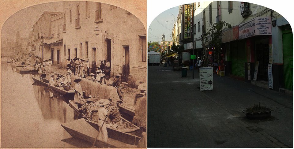 Vía @Cuauhtemoc_1521: La acequia real sobre la calle de Roldán a finales del siglo XIX y en el siglo XXI. pic.twitter.com/7XyPTDnPRd