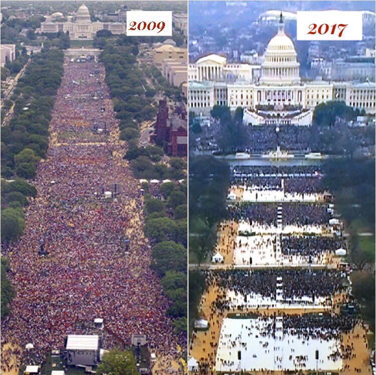 Y luego?? Los mismos lugares siguen estando vacíos!! A diferencia de Obama que no había espacio sin gente osea menos gente fué con Trump!!