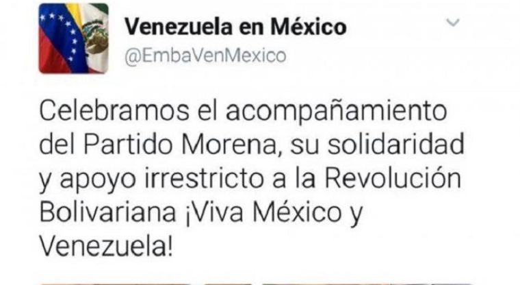 Pues el q se va a donde dijiste es AMLO, ya que es un tweet de la embajada de Venezuela en México, para que vean hacia donde va AMLO