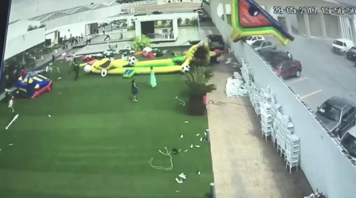 Ventarrón arrastra juegos inflables con niños en su interior durante fiesta en SLP (VIDEO) https://goo.gl/cn1ujC pic.twitter.com/ijidg9LrHF