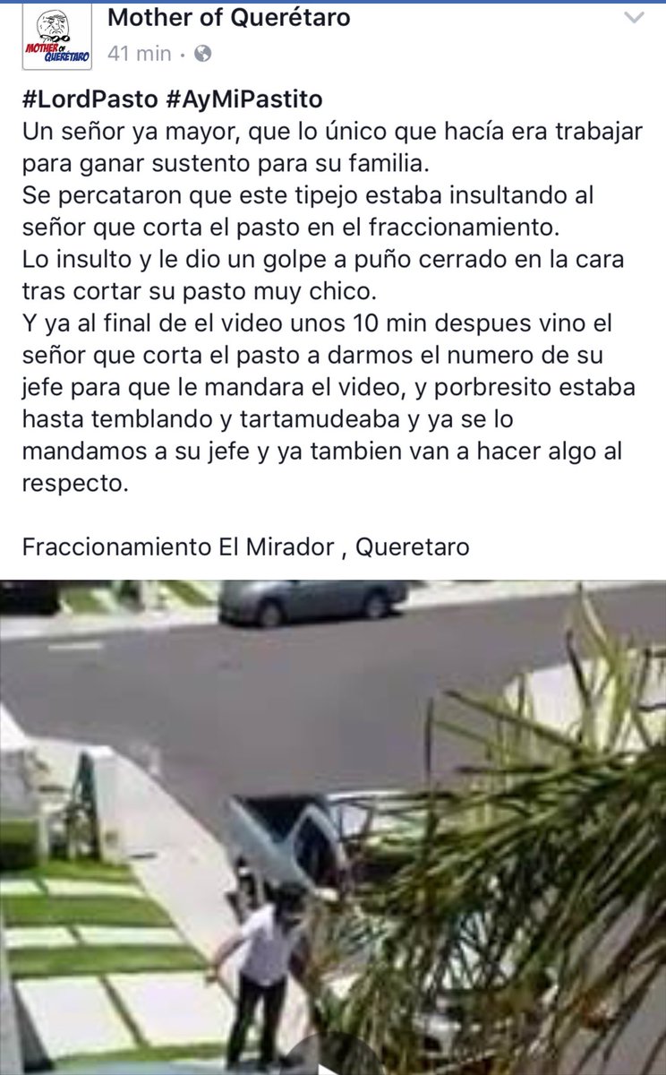 Y en Querétaro un #lordpastito ojalá lo ubiquen no se vale golpear a un señor mayor q trabajaba cortando pasto.pic.twitter.com/ma93aV4uFX
