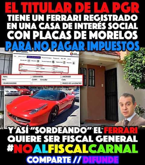 No has comentado nada referente al auto Ferrari del Procurador de la Republica con domicilio en Edo.Morelos en ina cada de interes social?