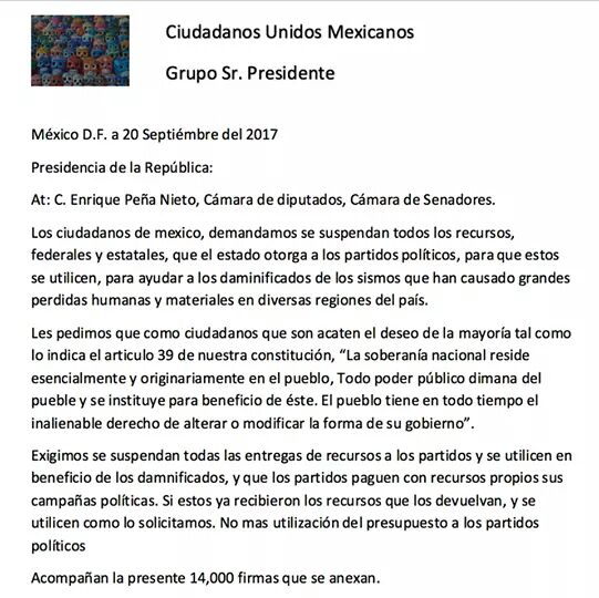 es una petición en http://CHANGE.ORG , aquí esta en link para firmar!!https://www.change.org/p/inemexico-donar-los-casi-7-000-millones-de-los-partidos-a-v%C3%ADctimas-del-sismo-7-sep-y-19-sep?recruiter=14165241&utm_source=share_petition&utm_medium=facebook&utm_campaign=share_petition&utm_term=share_page …