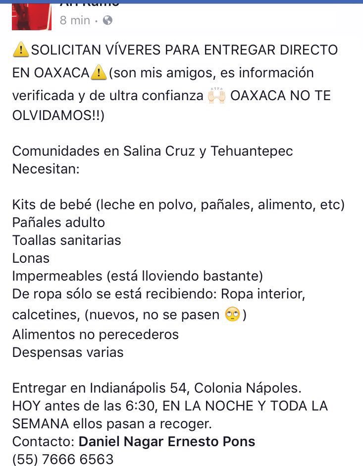 La ciudadanía ha ayudado bastante. El gobierno con los donativos que ha recibido debe ayudar también, que done las casas de campaña y lonas.