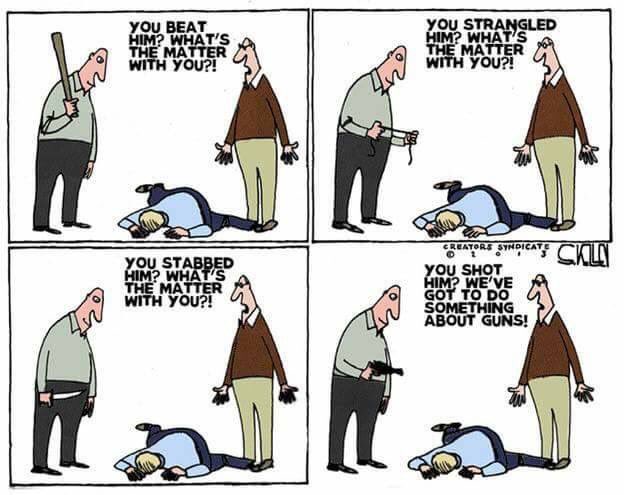 Si entiendo perfecto el gráfico, pero un batazo, una estrangulación, un arma blanca, no lograrían matar a cientos de personas como un arma.