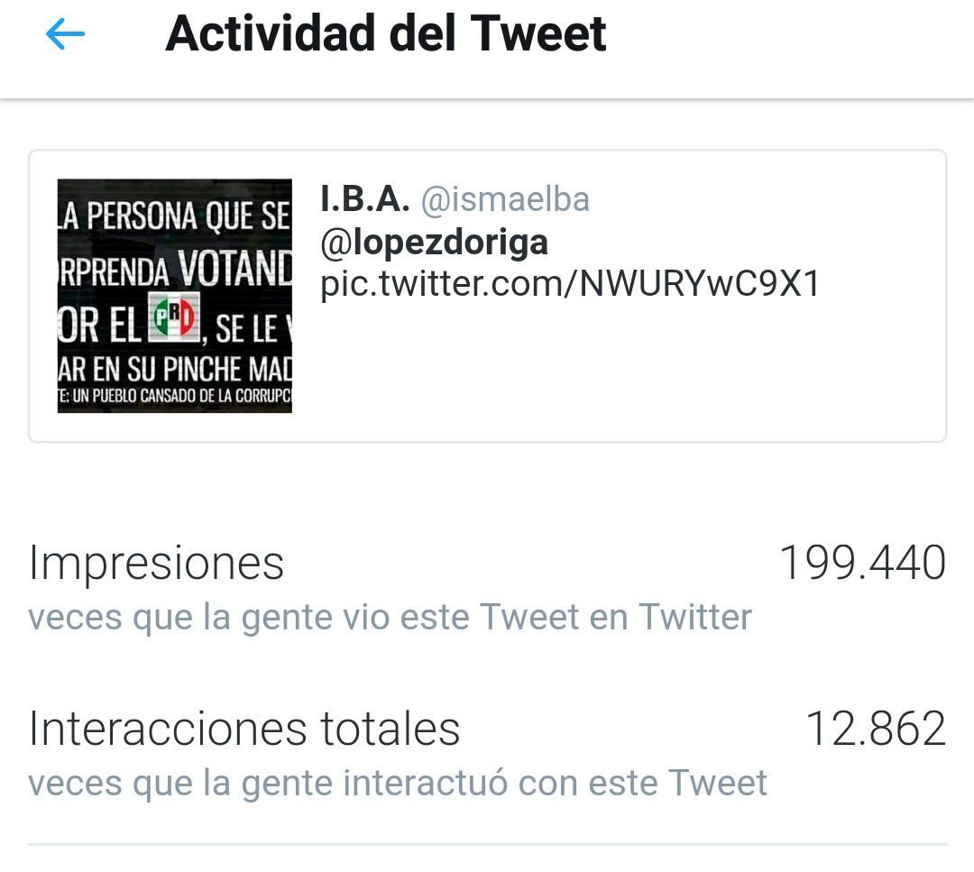 Q buen comentario felicidades . Si eso presume la mierda de López pos parece q@sus 7 millones nomas interactuaron pocos