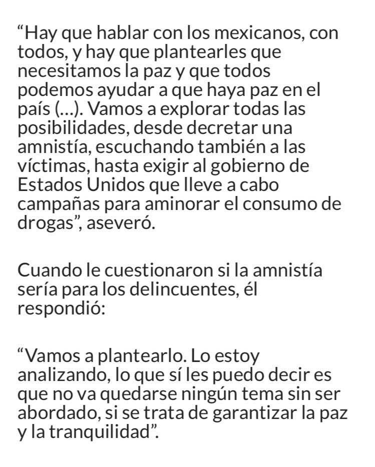 Una más de sus ocurrencias. Por conseguir votos es capaz de ignorar el dolor de tantas víctimas del narcotrafico bajo la falsa premisa de pacificar al país. Simplona y manipuladora su propuesta.
