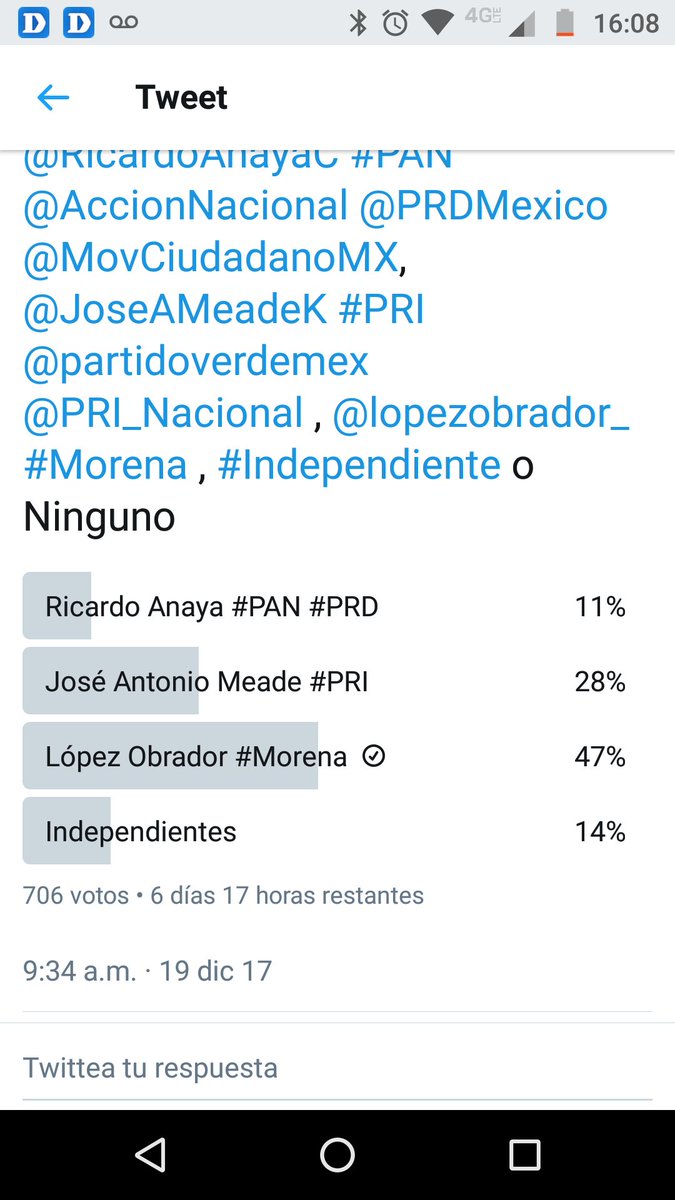 Aquí los resultados de otra encuesta, mucha diferencia entre una y otra ,la gran mayoría en otras dan gane AMLO !pic.twitter.com/bhjXx4ADFg