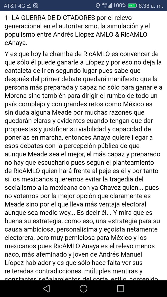 Ojalá que sí gane Meade... El pueblo de México aún es muy inmaduro para entender lo que implica tener un presidente de extrema izquierda cuando se está a un lado de la principal potencia capitalista del mundo: E.U.