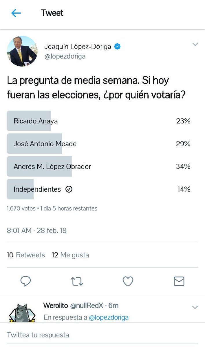 Cómo es costumbre vamos hacer una pregunta dentro de la pregunta de López, si hoy fueran las elecciones por quien votaria.