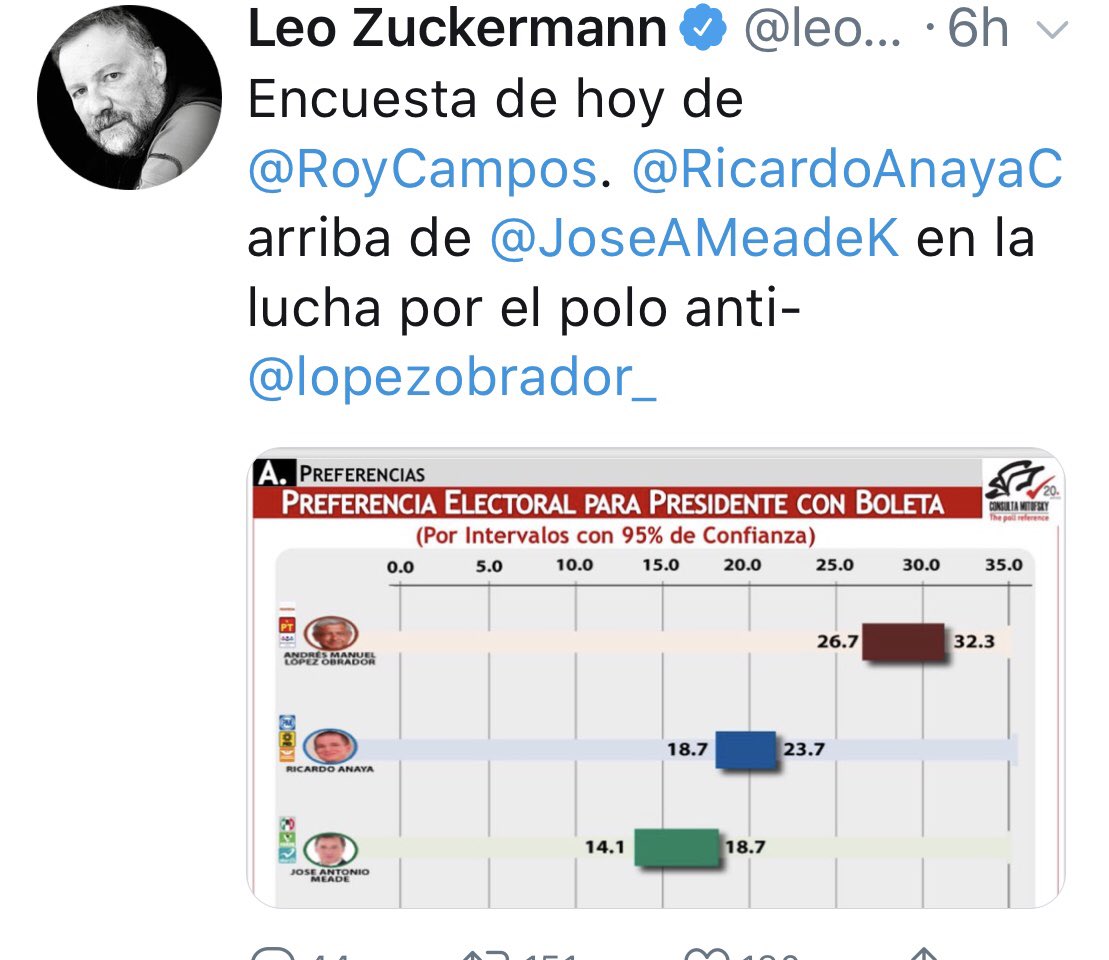 Estimado Joaquín, pero esto que estás mostrando se opone completamente alo que siempre reflejan tus encuestas . 24 puntos de Meade y 42 de AMLO.pic.twitter.com/tI40q9Al4A