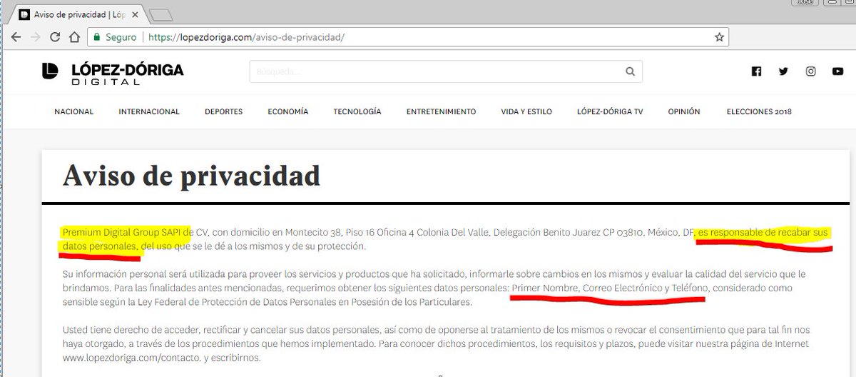 ¡López Dóriga punto com admite que almacena datos de sus usuarios. Aquí los detalles:pic.twitter.com/DKBh8pISZd