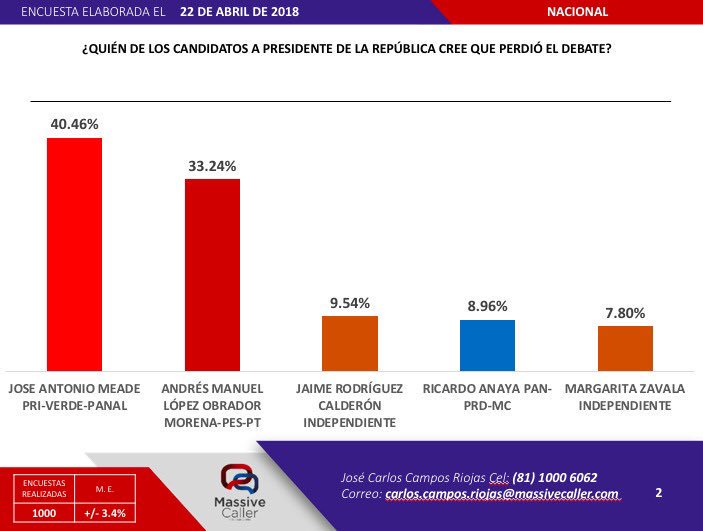 Ganó Anaya en éste debate y el peje nos quito a muchos las dudas de votar por él. Fue como ver a AMLO en un spot. No había forma de defender lo indefendible. El Bronco sorprende y Margarita sus nervios la traicionaron