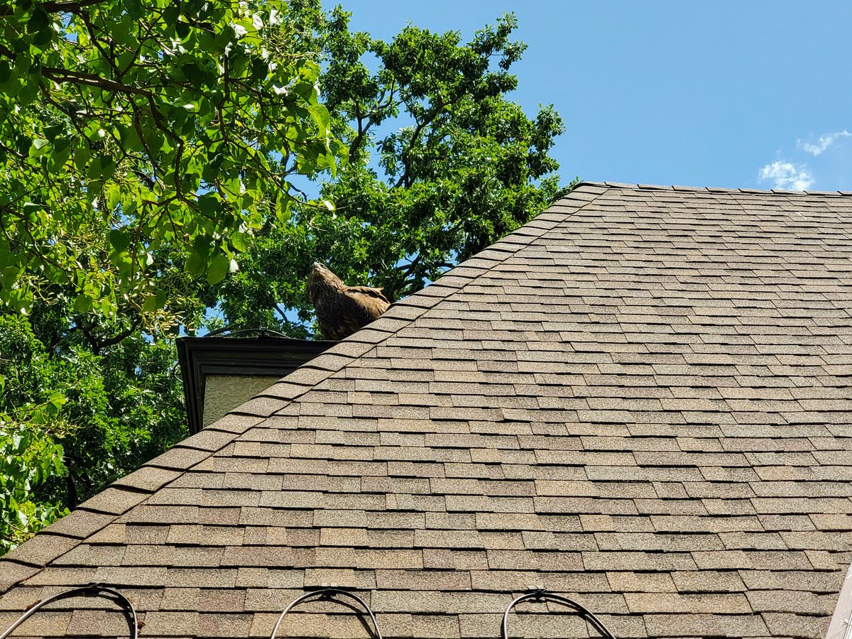 My house this morning... topped by the fledgling bald eagle from the nest down the block.pic.twitter.com/6hMcpB62qC