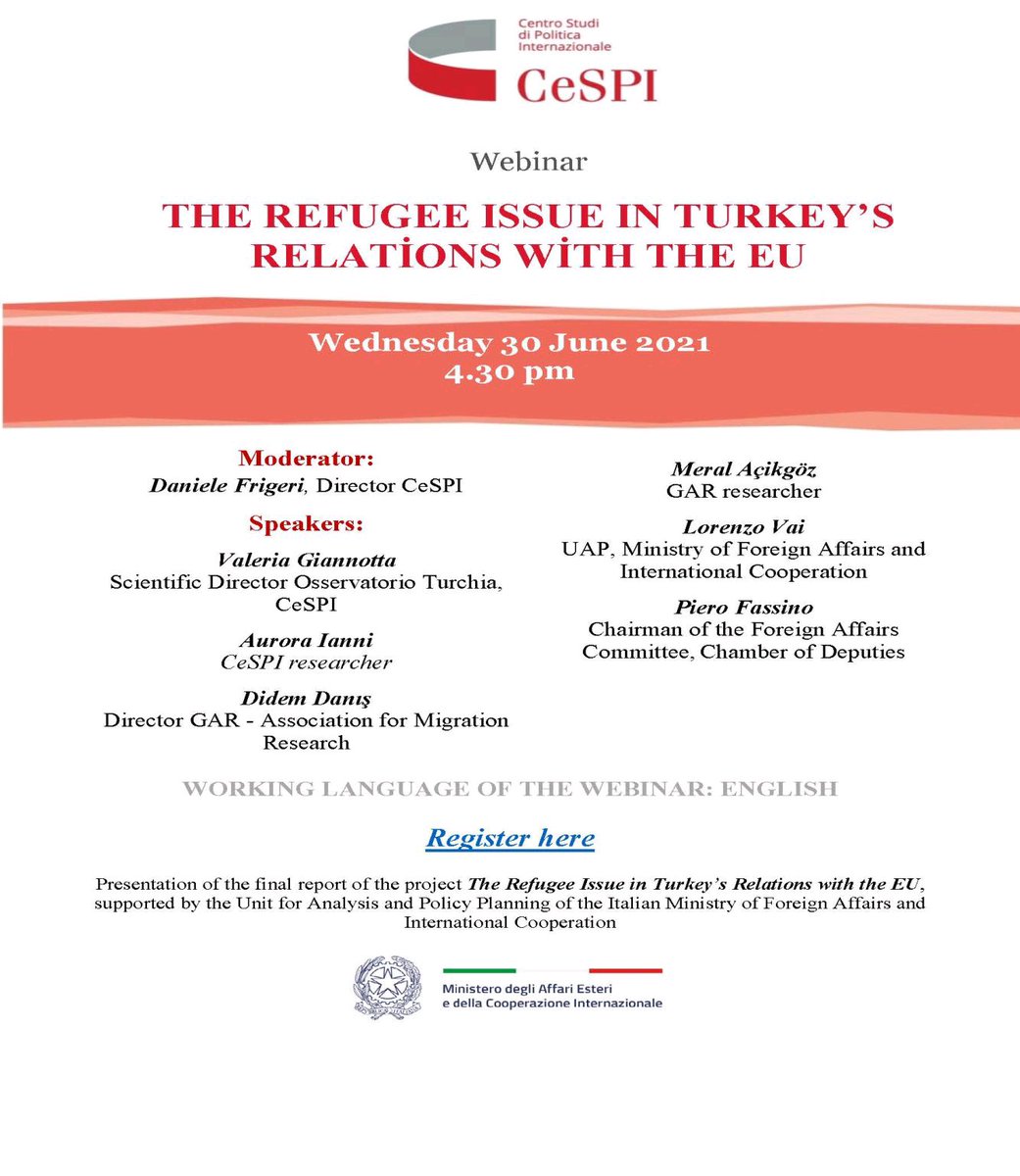 A very timely webinar on a study I've proudly coordinated in the frame of #CeSPI Observatory on Turkey -#GAR (Göç Araştırmaları Derneği) successful partnership! Do not miss it!