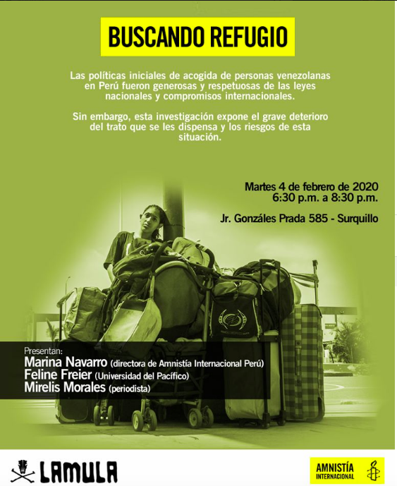#migración venezolana, a propósito del lanzamiento de un informe de Amnistía Internacional. . Tendremos una actividad previa a las 5:30 que podrán ver por http://lamula.pe@mi_mo_topic.twitter.com/rwm1TZUkeR