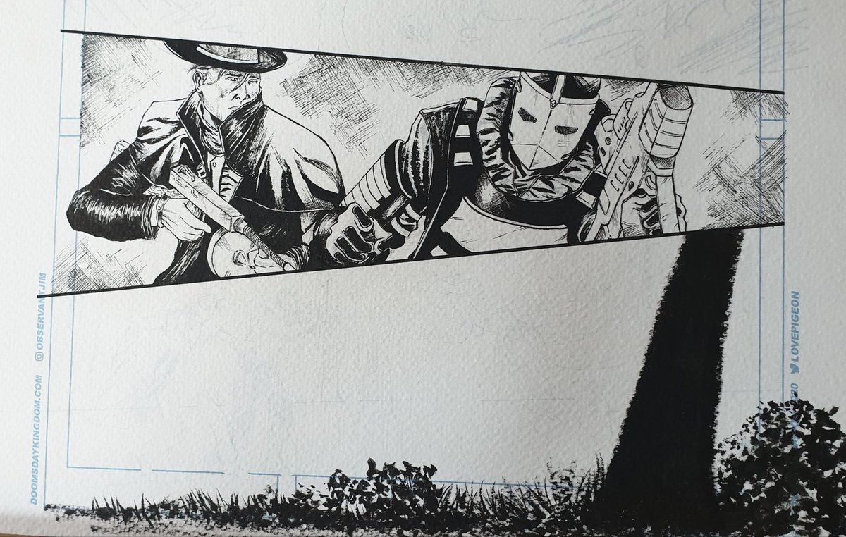 More inks process. Used a Q tip to create a dof effect for the foreground. http://Igg.me/at/doomsdaykingdom …