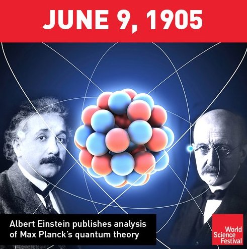 Einstein explains photoelectric effect, launching quantum mechanics. (I'm a day late but in a quantum world how can we be sure?)pic.twitter.com/b05OQkxmNc