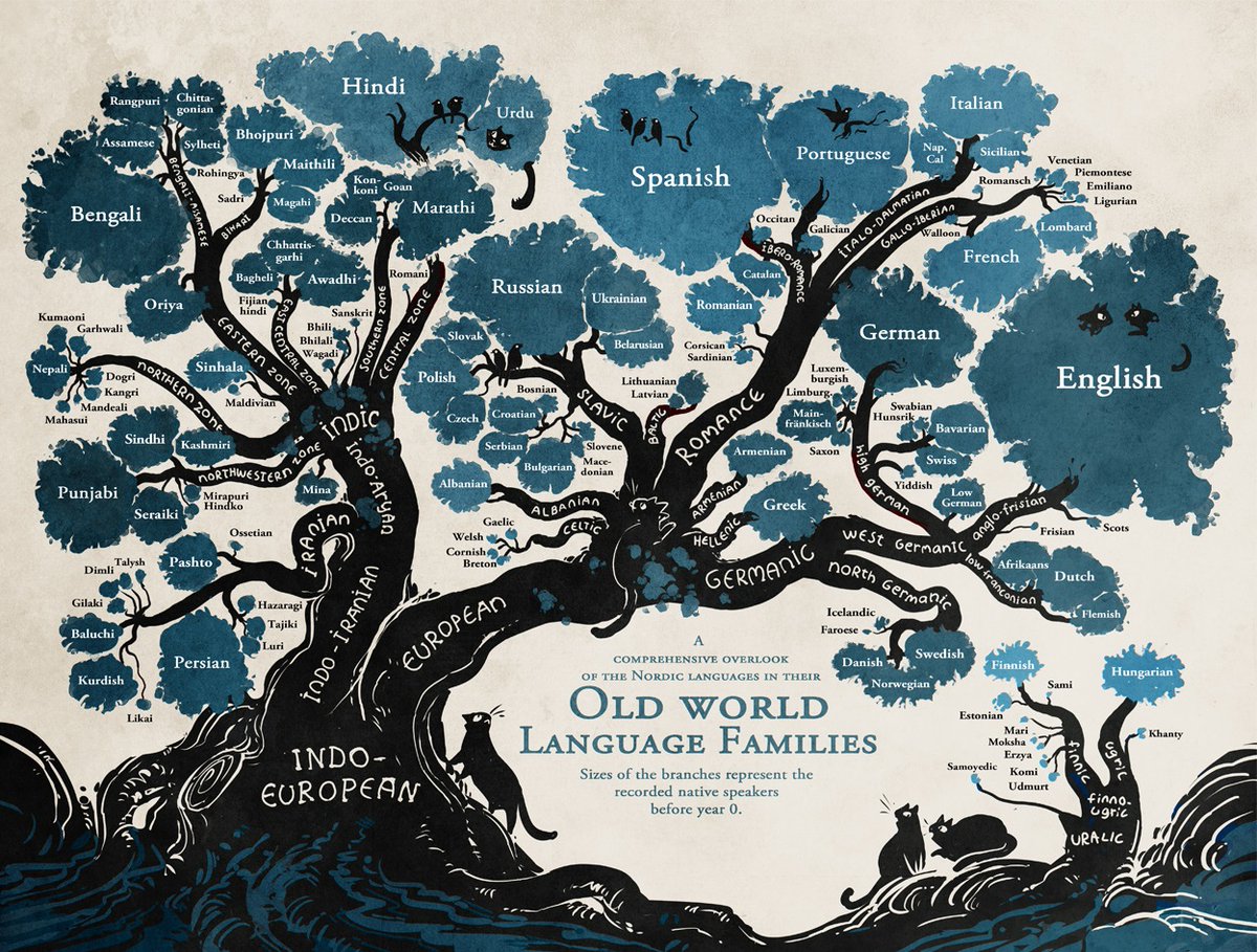 A fascinating 'family tree' of the spread and relation between languages of the Old World.pic.twitter.com/DjNl1rsblr
