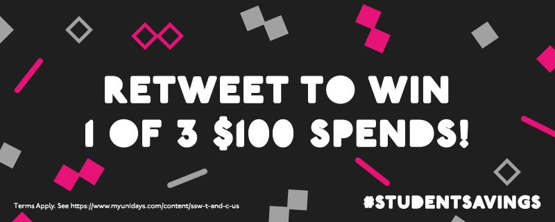 @UNiDAYS_US RT to win 1 of 3 $100 spends#StudentSavings. Register Now: http://bit.ly/2fTXAmQ pic.twitter.com/Uw0X1gaqnI