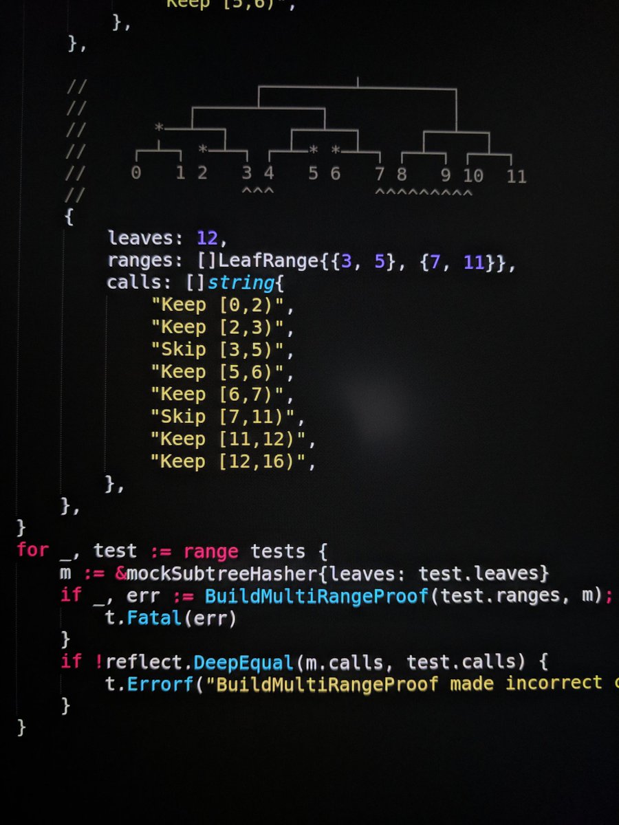 Testing whether a Merkle proof algorithm is examining the correct ranges using mocks in #golangpic.twitter.com/Smde2qyBpn