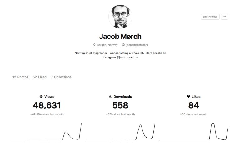 500px = 8,916 photo views over 4 months Unsplash = 48,631 photo views over 4 DAYS