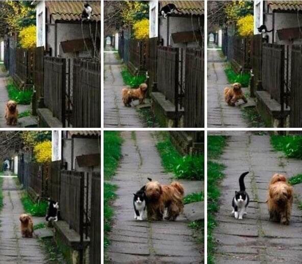 Todos los días, a la misma hora, en el mismo lugar, ella espera por él, y cuando llega van juntos a dar un paseo.