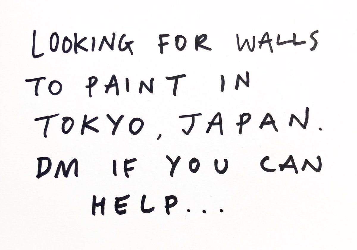 Japan is notoriously hard to get walls to paint, if you have one or can help to find them holla at my DM’spic.twitter.com/9Q9vn4Gysh