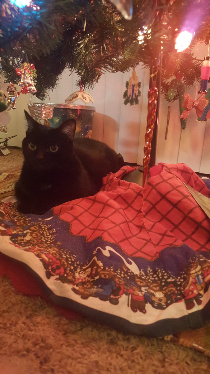 Nah she just likes laying under the tree. We always wait to put the presents under there till last minute every year since she loves laying there so much.