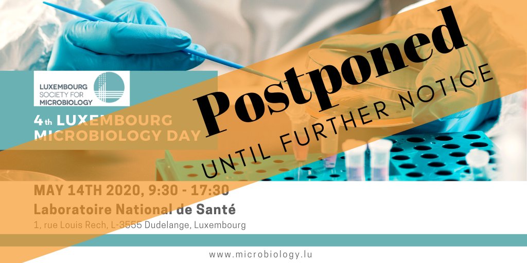 Due to the current #COVID19 situation, the 4th Luxembourg Microbiology Day which was planned for the 14th of May, has been postponed. We will evaluate later whether we will be able to organize LSfM’s major yearly event in 2020. In the meantime, please take care and stay safe!pic.twitter.com/KFVyEvOev0