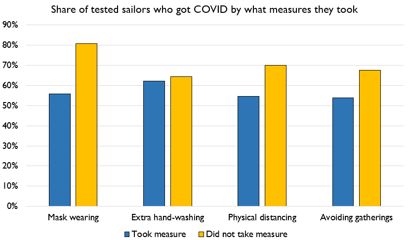 It's informative, but studies like this have lots of places for unintentional bias. 1) it's a convenience sample. While it makes sense the masks help, maybe all the flight deck crew, who are outside for work, wear masks, and took test would skew.