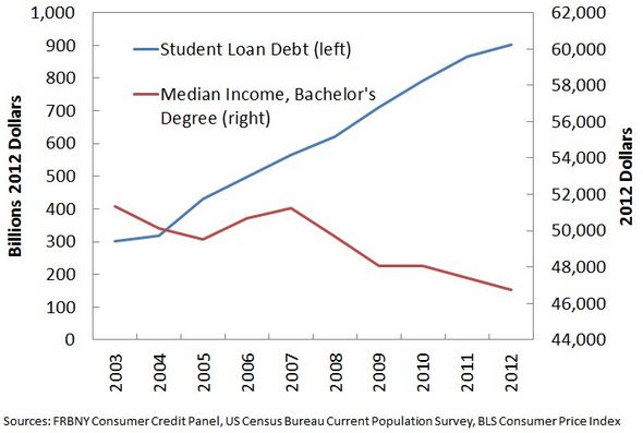 Peter Thiel’s “Graph of The Year”: Student loan debt vs US median bachelor degree income http://www.washingtonpost.com/blogs/wonkblog/wp/2013/12/30/peter-thiels-graph-of-the-year/ …pic.twitter.com/QuEgtMSWdL
