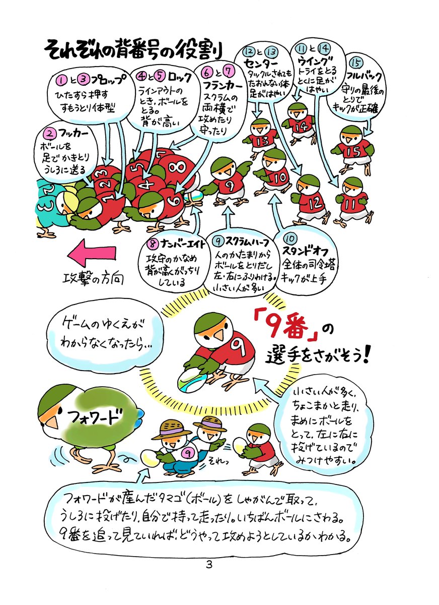 ラグビールールはインコで解説できる。ラグビーW杯日本大会を、ルールを理解して楽しみましょう。全16ページの詳しい解説はブログにまとめてあります。https://penguin10.exblog.jp/27775139/ pic.twitter.com/Aasu2YKW8E