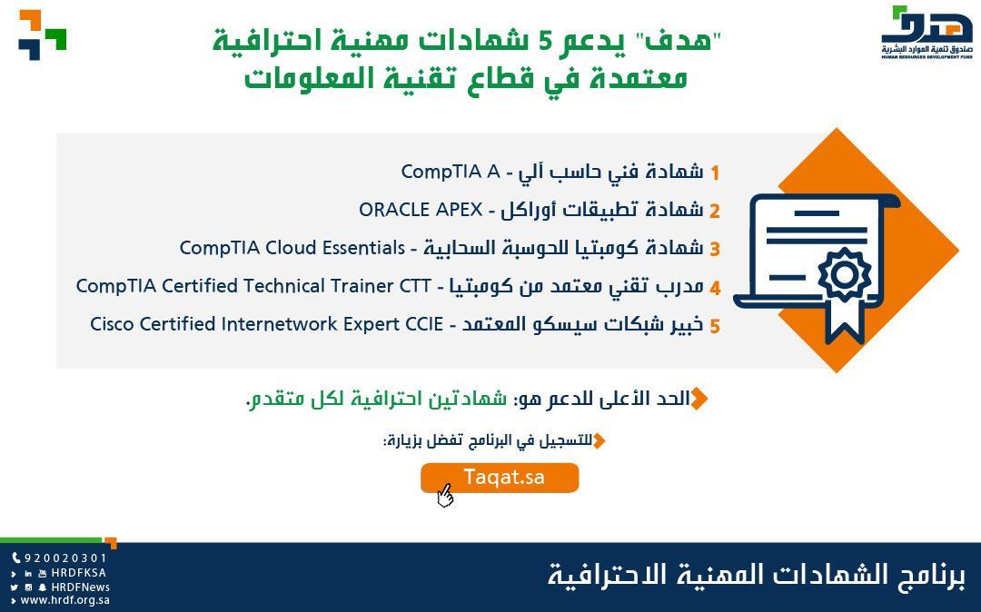 #هدف يدعم 5 شهادات مهنية احترافية معتمدة في قطاع تقنية المعلومات. http://www.spa.gov.sa/2026977#واس_اقتصاديpic.twitter.com/Grvoh2Rx5g