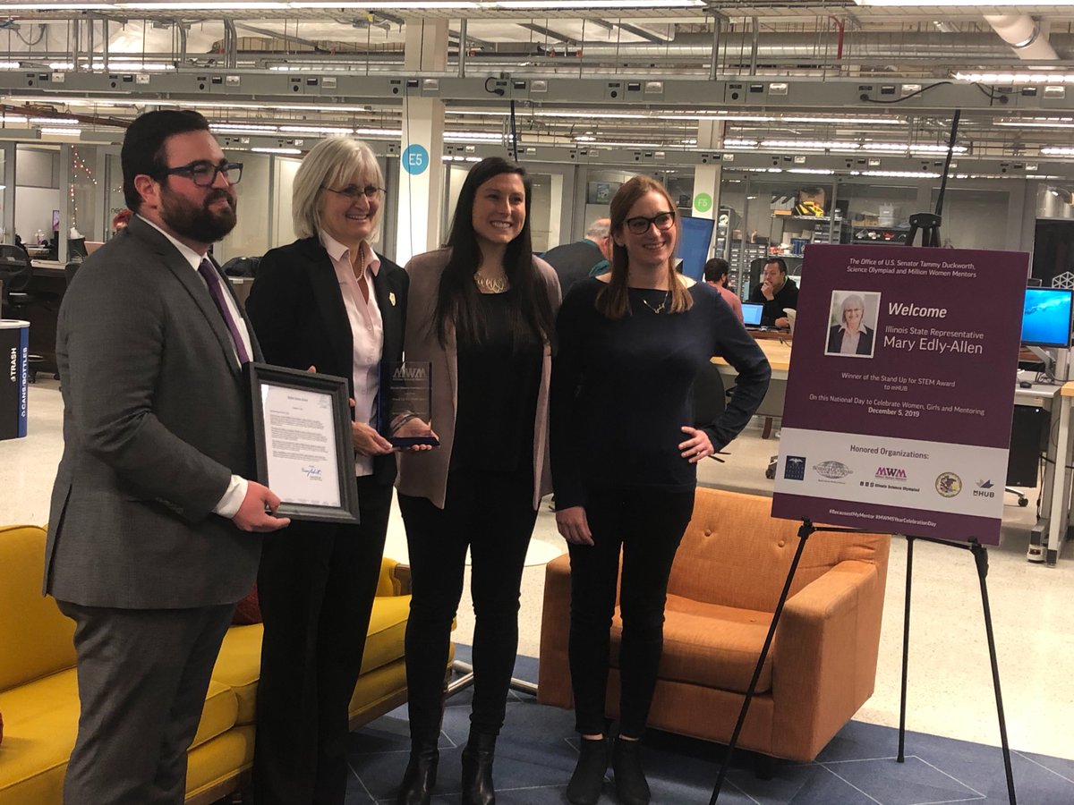 #mHUB, the Office of@SenDuckworth,@SOAlumniNetwork, and@MillionWMentors presented the "Stand Up for STEM" award to IL State Representative Mary Edly-Allen! The award highlights her dedication to providing young Illinoisans access to#STEM education. Congratulations!pic.twitter.com/lPv0eDBpWi