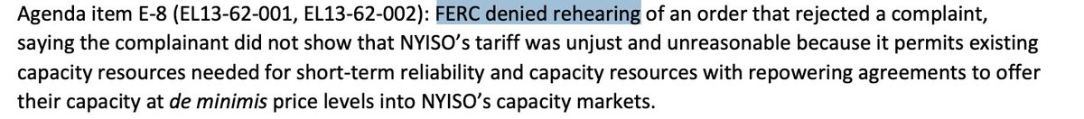 FERC wants NYISO to apply mitigation to demand response resources, sure to worry companies in that nascent industry. And this was the effort by incumbent generators to dramatically expand buyer-side mitigation rules, which FERC has rejected:pic.twitter.com/u36TeMBS5P