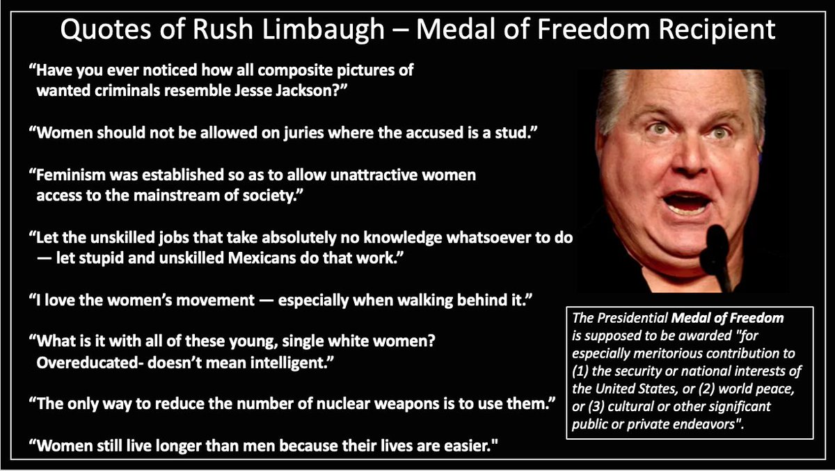 #RushLimbaugh deserves the#Medal of Freedom?#MEDALRUSH#TrumpIsADisgrace#trumpIsACorruptLiarpic.twitter.com/SzlHYA3o7Q
