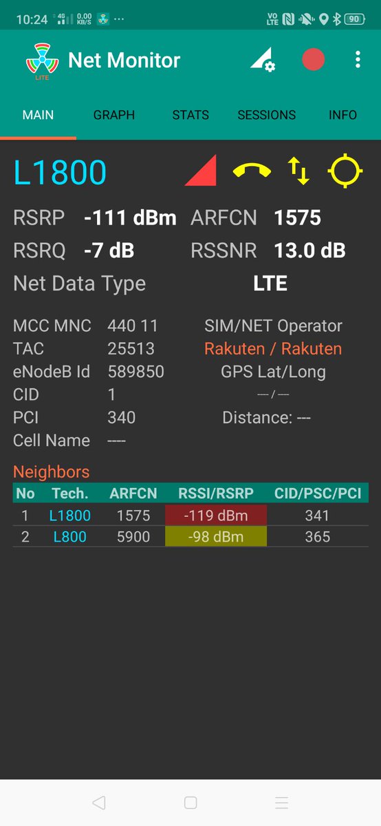 市街地では楽天モバイル基地局(band3/1800Mhz)へ繋がりますが、auローミング(band18/800Mhz)に切り替わることも多いですね。pic.twitter.com/i1nPhtYgle