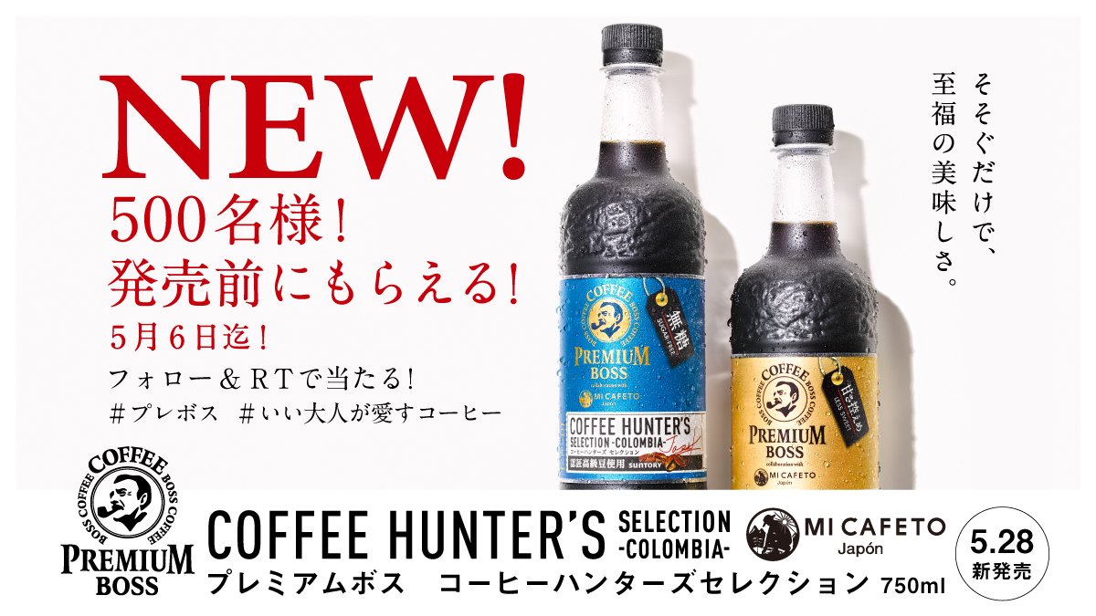 プレミアムボスコーヒーハンターズセレクション 750mlペット 500名様に