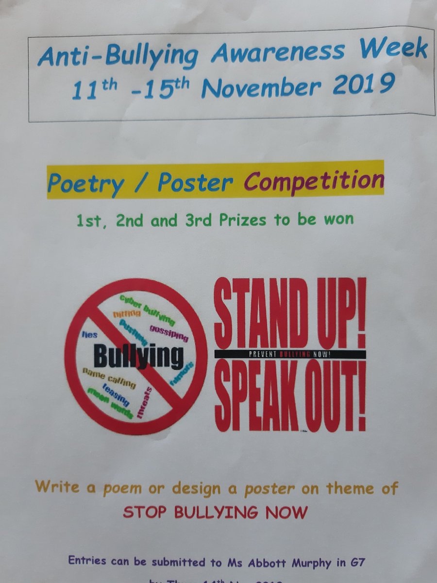 #AntiBullyingWeek Poetry/ Poster Competition 2019@Colaistebride. Well done