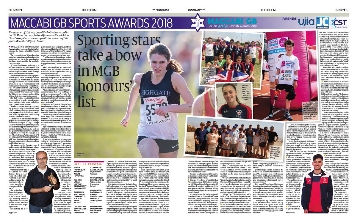 Maccabi GB in partnership with @JewishChron is delighted to announce the winners of the 2018 Maccabi GB Sports Awards. Check out this week's JC & follow the link to find out who has been making their mark in 2018!